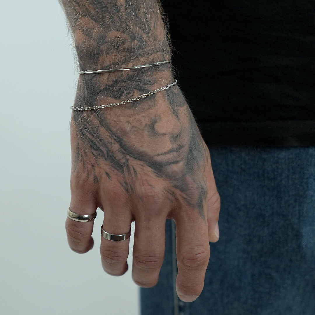 Ring+armbånd comboen er en klassiker. Platinen skiller sig virkelig ud.